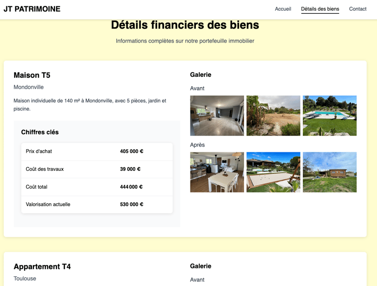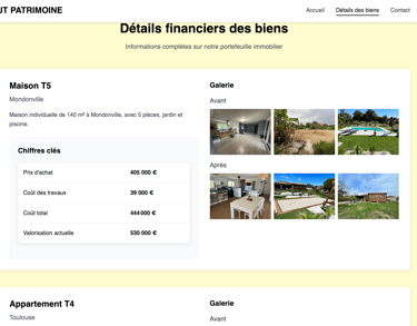 Site vitrine pour une foncière, une partie protégée par mot de passe pour les informations sensibles